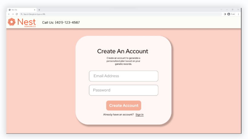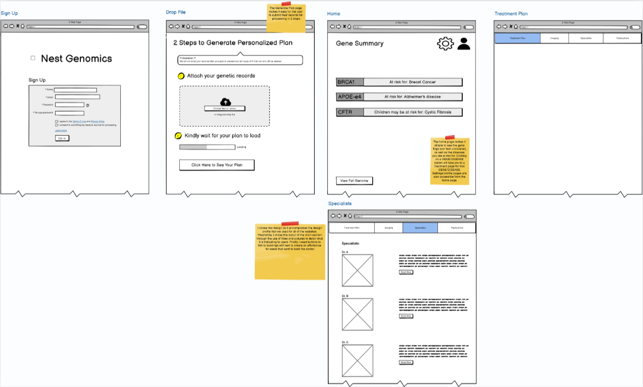 We designed a web interface for startup Nest Genomics. Nest is software that generates a personalized medical treatment plan for you based on genetic testing results. It provides disease information and resources and can recommend imaging, specialists, medications, and more.