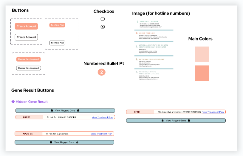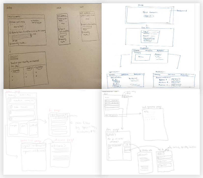 I and three teammates designed a web interface for Nest Genomics, an app that provides personalized treatment recommendations post-genetic testing (including imaging, specialists, and medication). Skip to the final design.